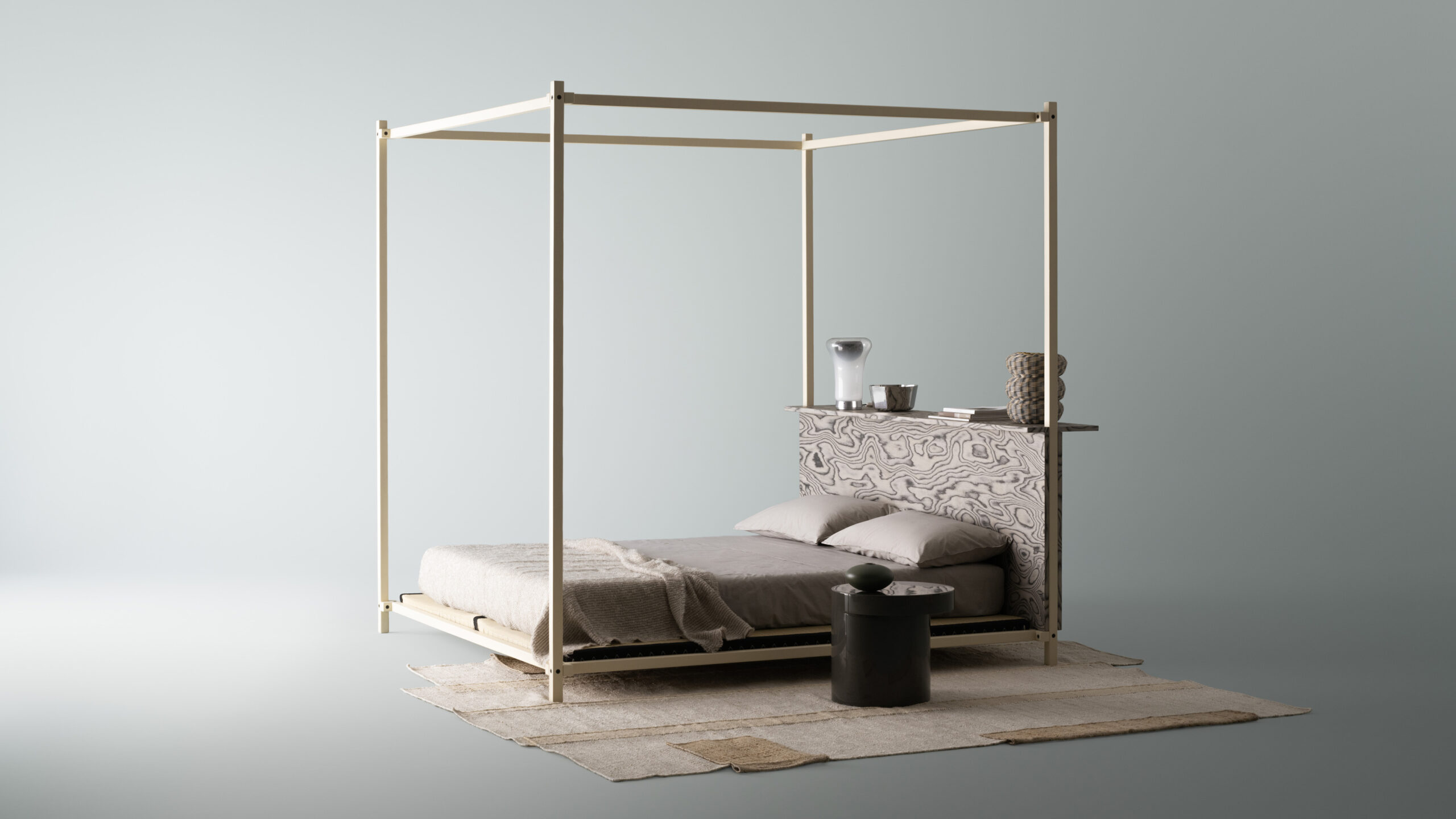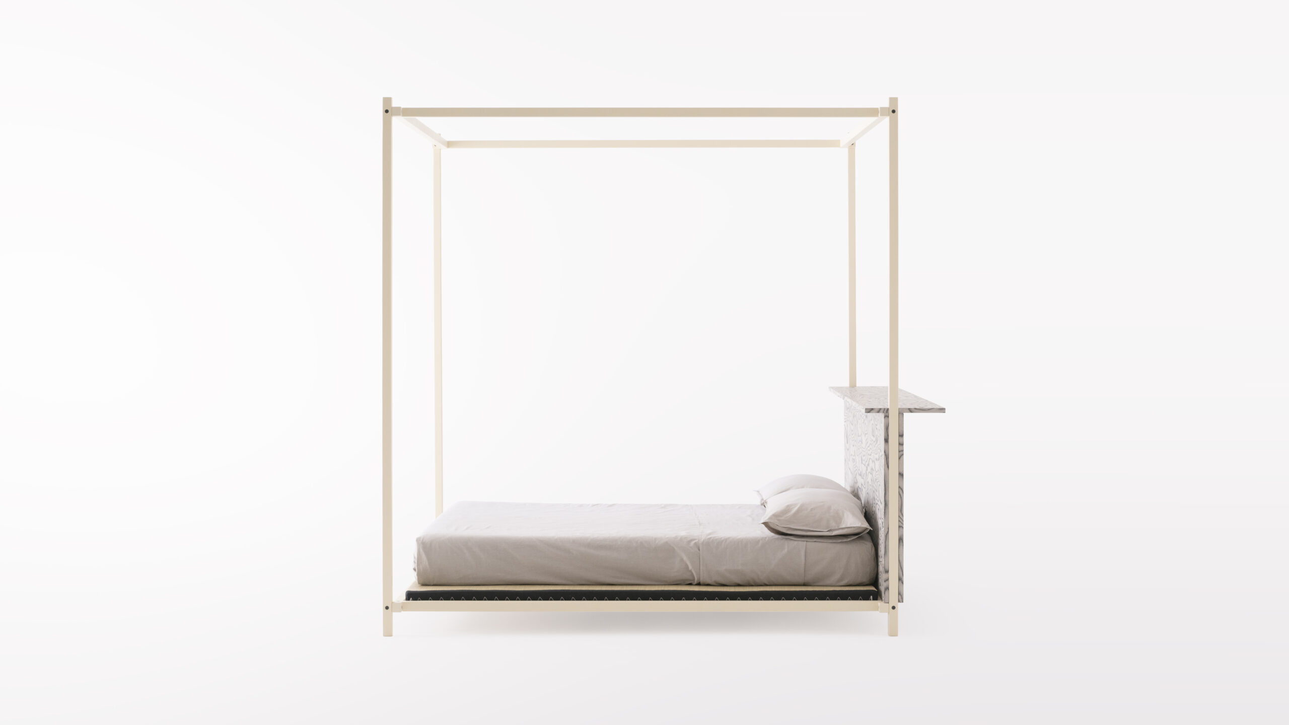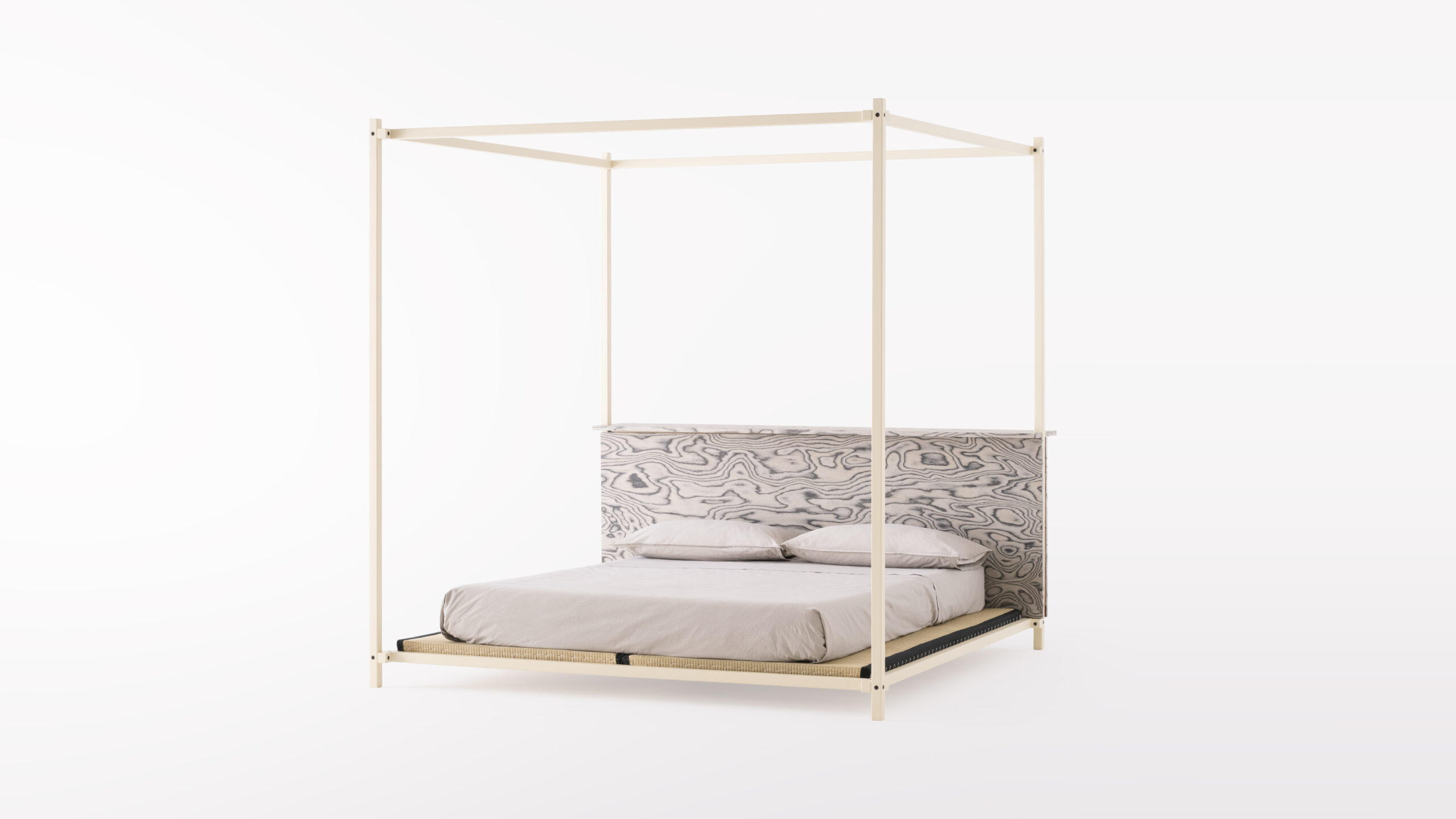 Tatamino is a “canopy tatami” that hybridise the West and Japan: placed on the canopy platform is a traditional tatami, with added mattress or cushions as desired, for alternative uses and configuration.